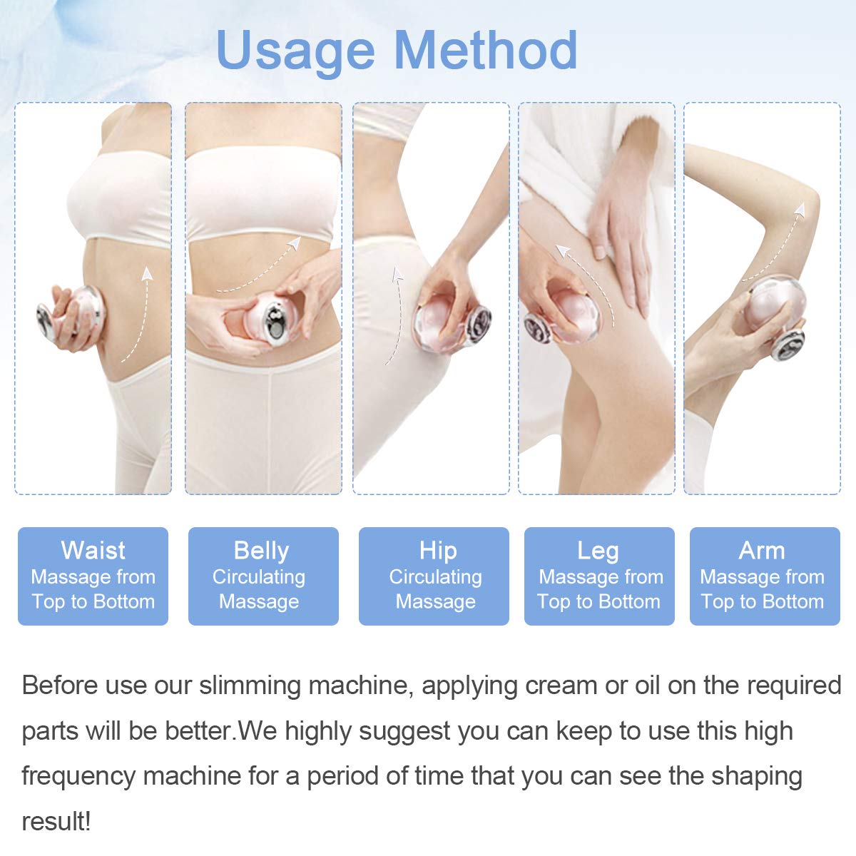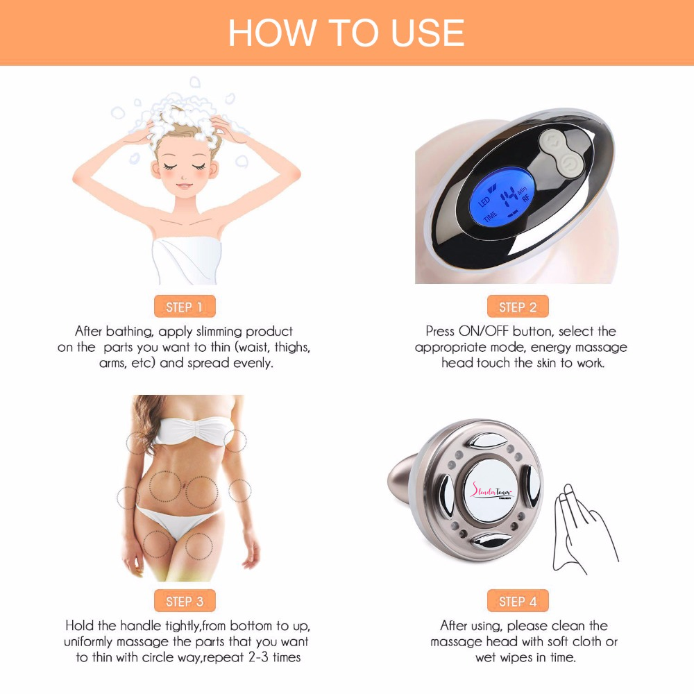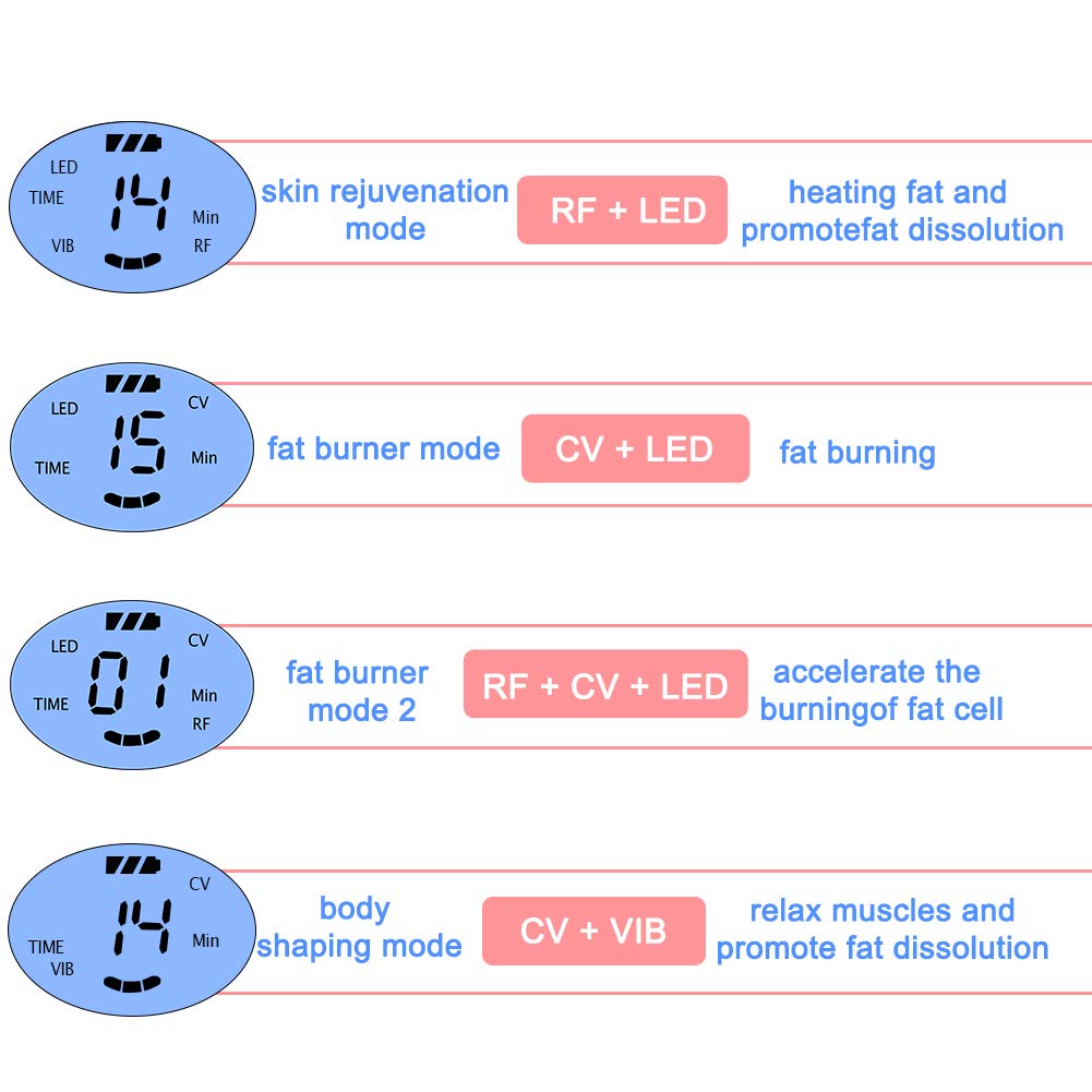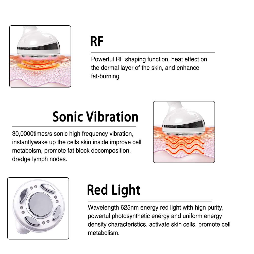 RF shaping function:Powerful RF function can make skin dermis layer produce high heat effect, and enhance fat-burning.