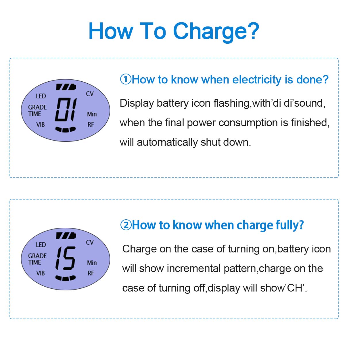 Energy LED red light + RF function(red light flash slowly / red light flash quickly / red light steady on, three gear)