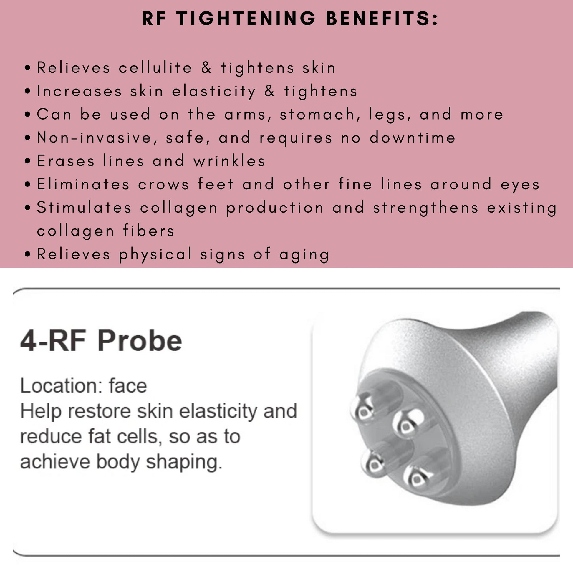 Ultrasonic Cavitation is a non-invasive alternative to liposuction. It’s one of the safest treatments for cellulite reduction. In places where diet or exercise are powerless, Ultrasonic Cavitation will allow you to reshape your body! Using the unique deep-heating technology (radio frequency plasma technology), rapid changes electric field polarity which alternately attracts and repels electrons and charged ions in the dermis and subcutaneous tissue. That is can change the collagen formation and encourages fibroblast migration and laying down of new collagen. RF technology RF can be offered for the improvement of skin laxity, wrinkles, and facial contours.