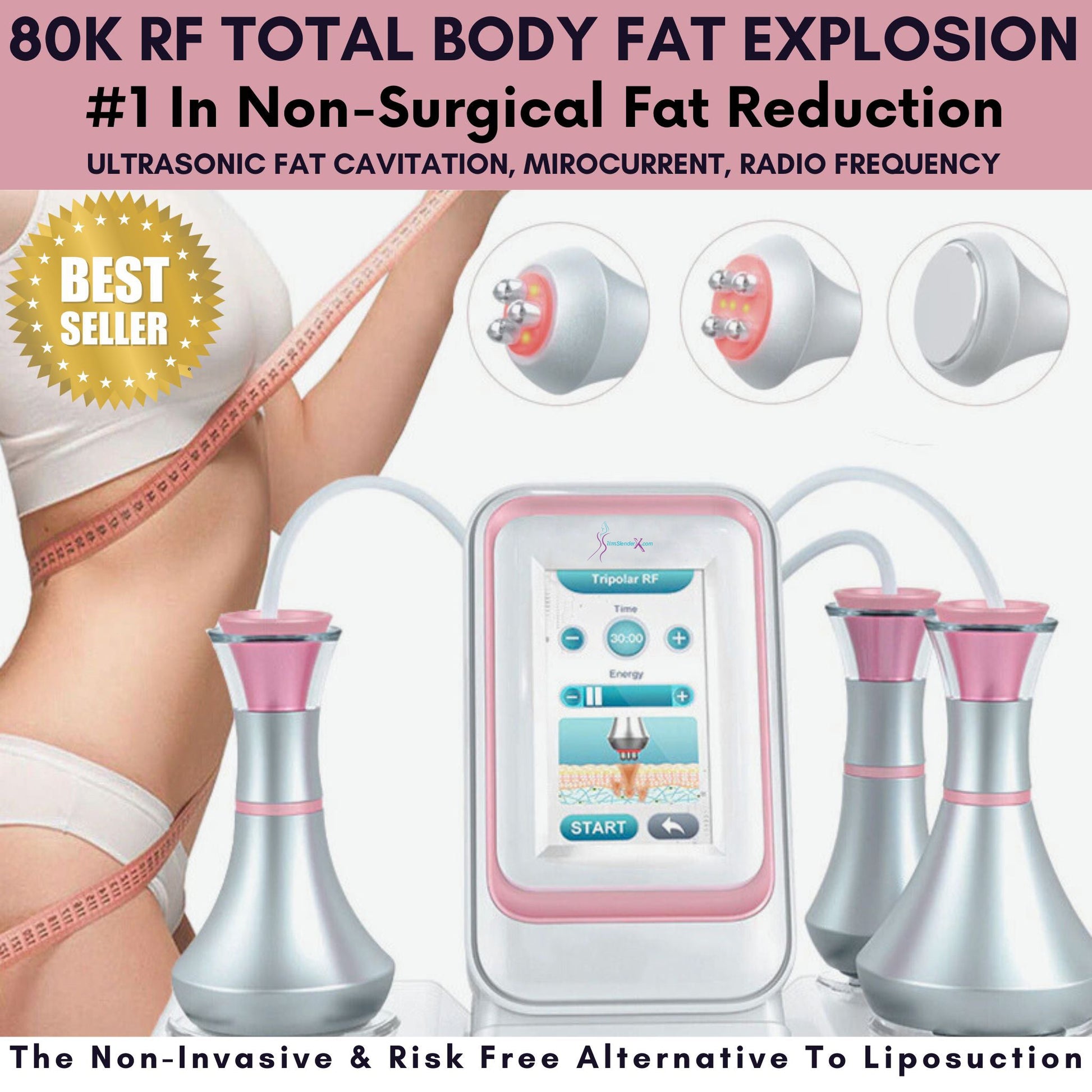 Ultrasound waves cause destruction of fat cell membranes, the released content is then absorbed by your body. Ultrasonic Cavitation system uses multi directional acoustic waves to ensure that focused energy is applied to a selected area damaging fat cells only. After releasing fat into system, body starts to break it down and eventually disposes it through lymphatic system over the course of a week.